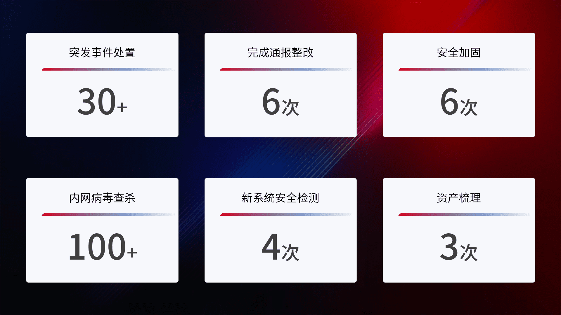 安全水平提升与事件响应:派驻经验丰富的安全工程师,,,提升医院网络安全防护的整体水平;建立突发网络安全事件的处置流程,,提高响应速度和处置能力。。。。